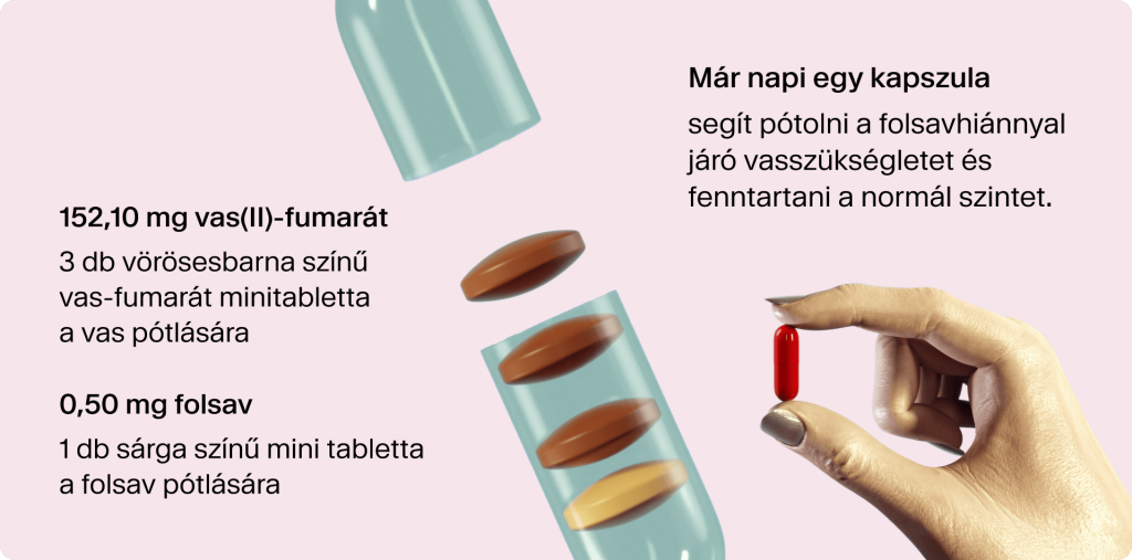 Ferretab® kemény kapszula vas(II)-fumarát és folsav tartalmú vény nélkül kapható gyógyszer.